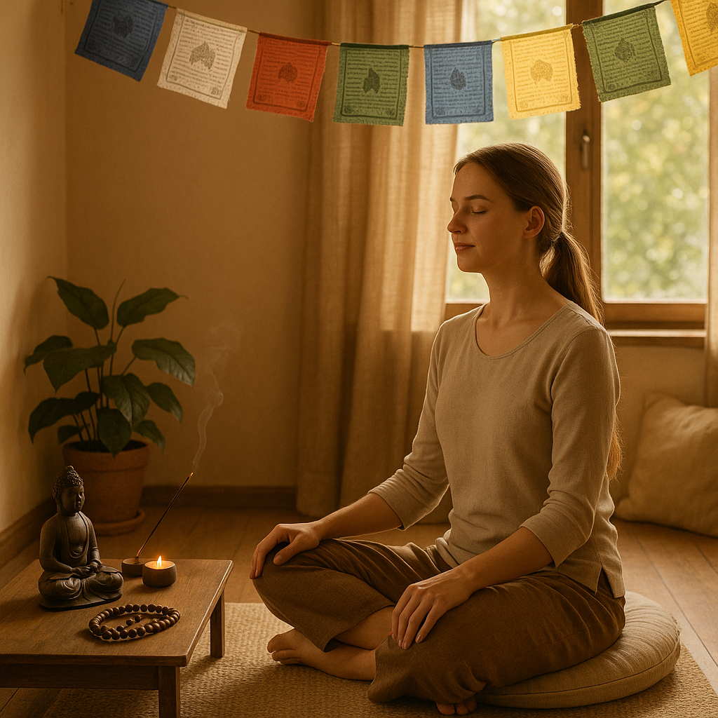 Daugelis žmonių, praktikuojančių meditaciją ar jogą, naudoja maldos vėliavėles savo praktikos erdvėse kaip priminimą apie ramybę ir susikaupimą.