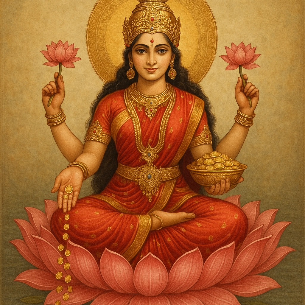 Lakšmi (arba Lakshmi) – viena garsiausių ir labiausiai gerbiamų hinduizmo deivių, garbinama kaip klestėjimo, gerovės, grožio ir sėkmės nešėja. Šią spindulingą deivę pažįsta milijonai tikinčiųjų visame pasaulyje – ji ne tik religinio garbinimo objektas, bet ir galingas simbolis, išreiškiantis materialinę bei dvasinę gerovę. Šiuolaikiniame pasaulyje Lakšmi figūra tampa vis populiaresnė tarp dvasinio kelio ieškotojų, jogos praktikuotojų ir žmonių, besidominčių energetinėmis praktikomis, kurios padeda atsikratyti baimių ir nerimo.