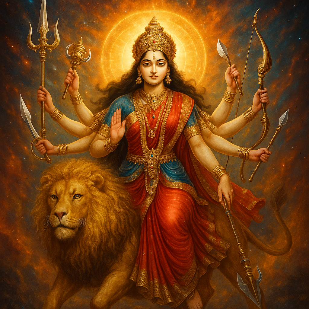 Hinduizmo tradicijoje Durga yra laikoma pirmaprade energija – galingąja Šakti, kuri įgalina, saugo ir palaiko visatos pusiausvyrą. Šakti, kaip gyvybinga, kūrybinė ir transformuojanti galia, apibūdinama kaip moteriškos prigimties, tačiau kartu universali jėga, persmelkianti viską. Ši dieviškoji energija yra ne tik senovės tekstų objektas, bet ir šiuolaikiniame pasaulyje aktuali koncepcija, padedanti suprasti vidinės stiprybės, apsaugos ir transformacijos galimybes.