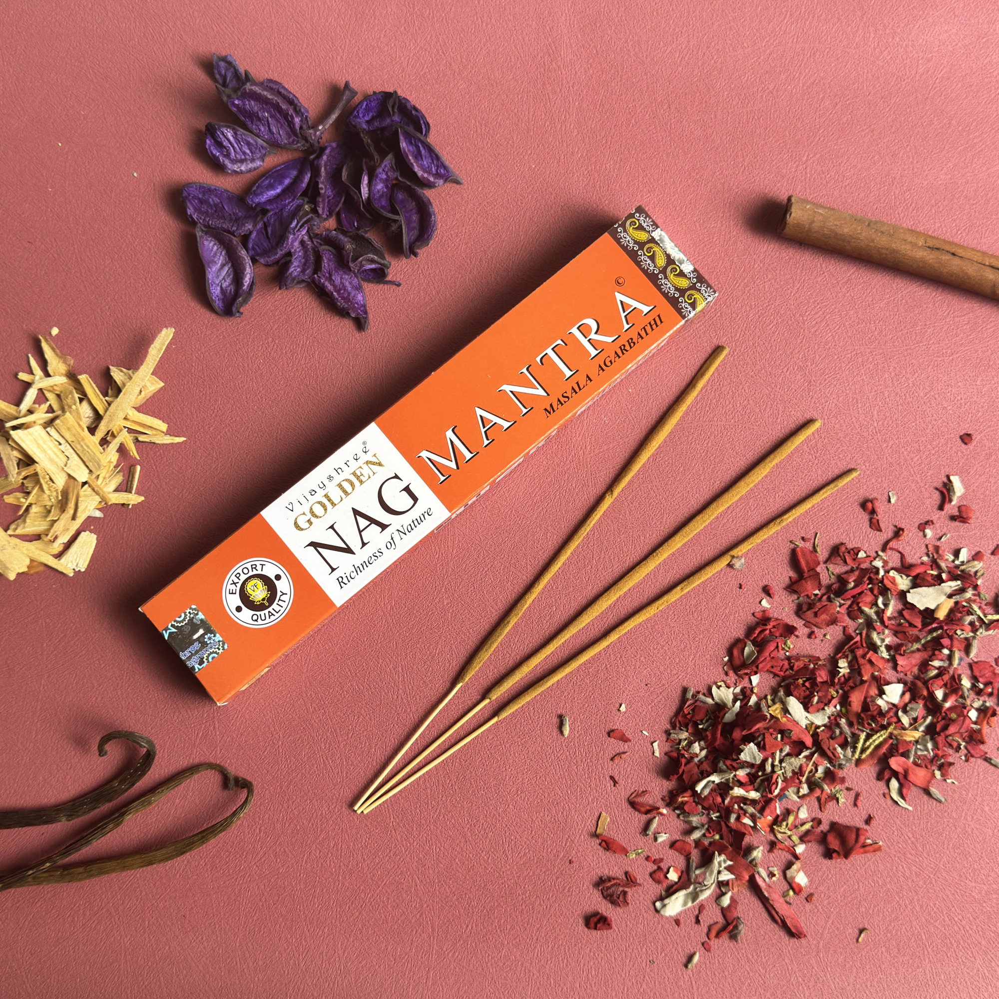 Garden Fresh Mantra Meditation premium masala smilkalai pagaminti iš geriausių žolelių, natūralios dervos, retos medienos, išskirtinio kvapo gėlių, aromatinių aliejų ir egzotinių prieskonių. Sudėtyje nėra sunkiųjų metalų ir kenksmingų chemikalų.