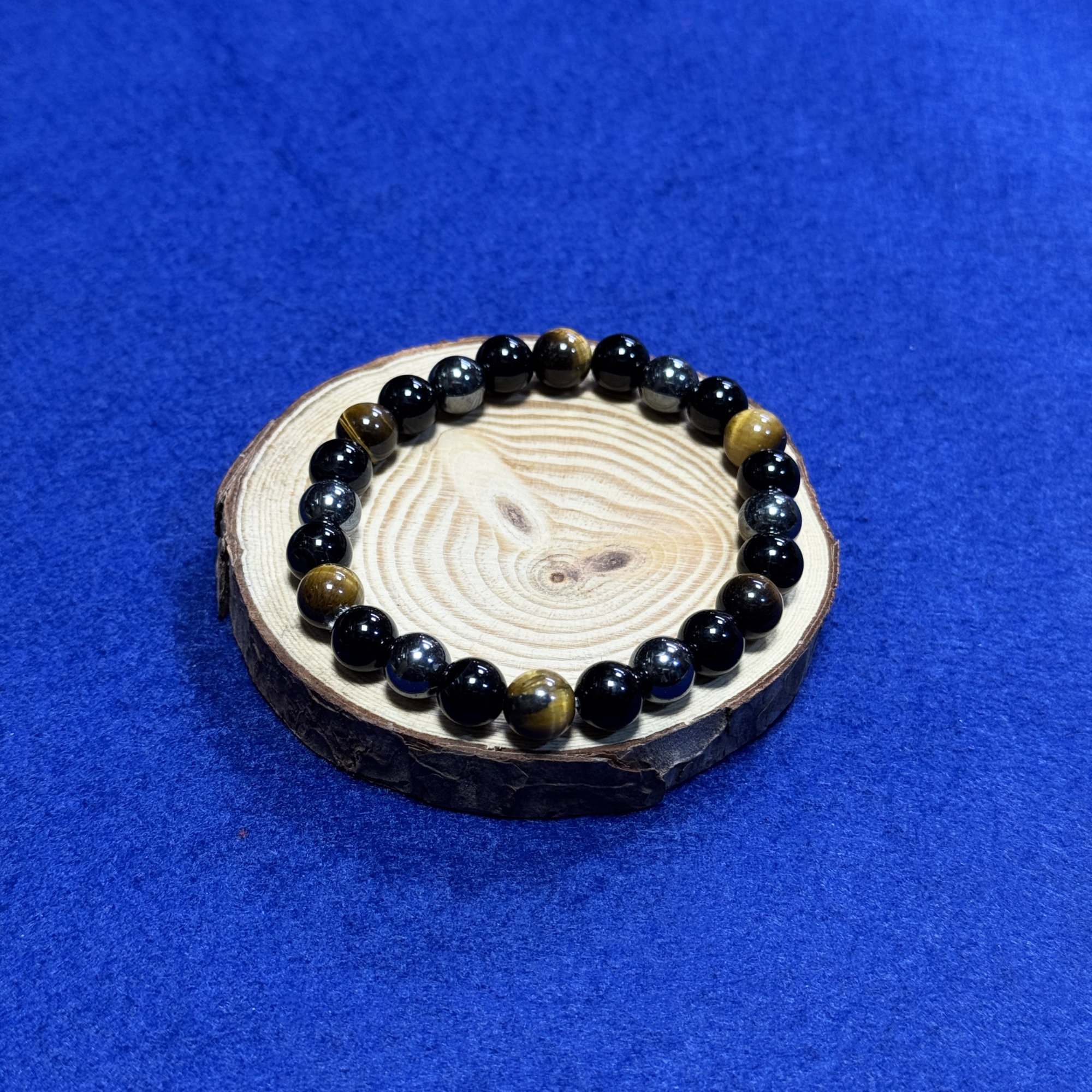Ši apsauginė apyrankė sujungia tigro akies, hematito ir obsidiano energijas, kurios stiprina vidinę jėgą, drąsą ir stabilumą. Tigro akis padeda įveikti baimes, stiprina pasitikėjimą savimi ir saugo nuo neigiamų minčių bei pavydo. Hematitas įžemina, stiprina ryžtą, padeda išlaikyti emocinę pusiausvyrą ir saugo nuo energetinio išsekimo. Obsidianas veikia kaip stiprus apsauginis akmuo – jis sugeria neigiamą energiją, padeda atsikratyti emocinių blokų ir stiprina vidinę discipliną. Ši apyrankė tinka ieškantiems apsaugos, stabilumo ir vidinės stiprybės kasdienybėje.