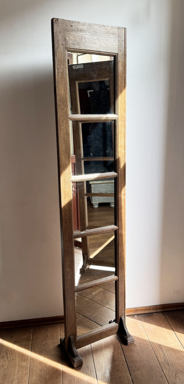 Pastatomas veidrodis pagamintas iš vintažinių durų rėmo.