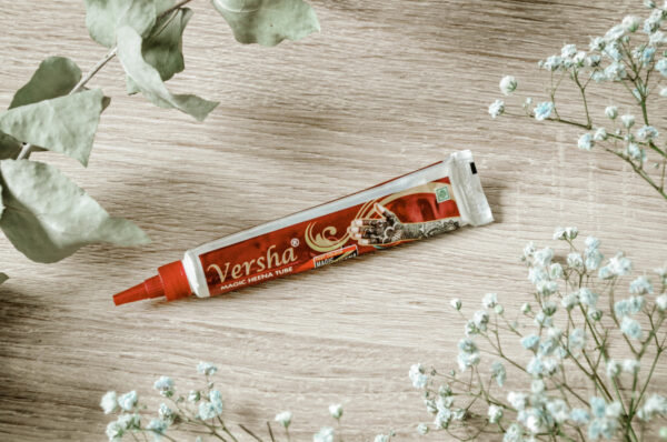 Natūralūs dažai, skirti piešti ant kūno. Piešiniai ant odos išsilaiko nuo 5 dienų iki 2 savaičių. Raudonai rudos spalvos.