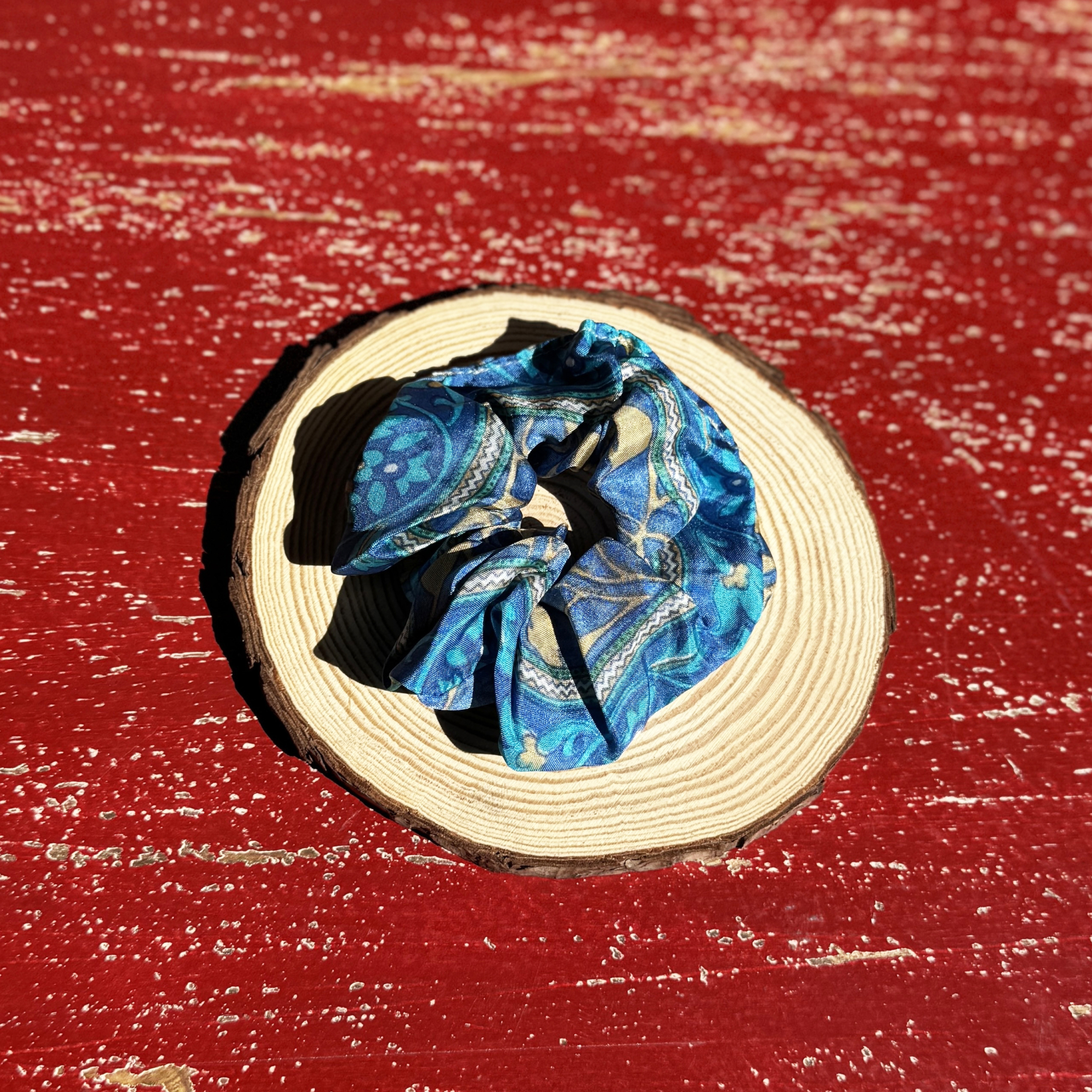 Šilkinė plaukų gumytė pagaminta iš vintažinio sario.