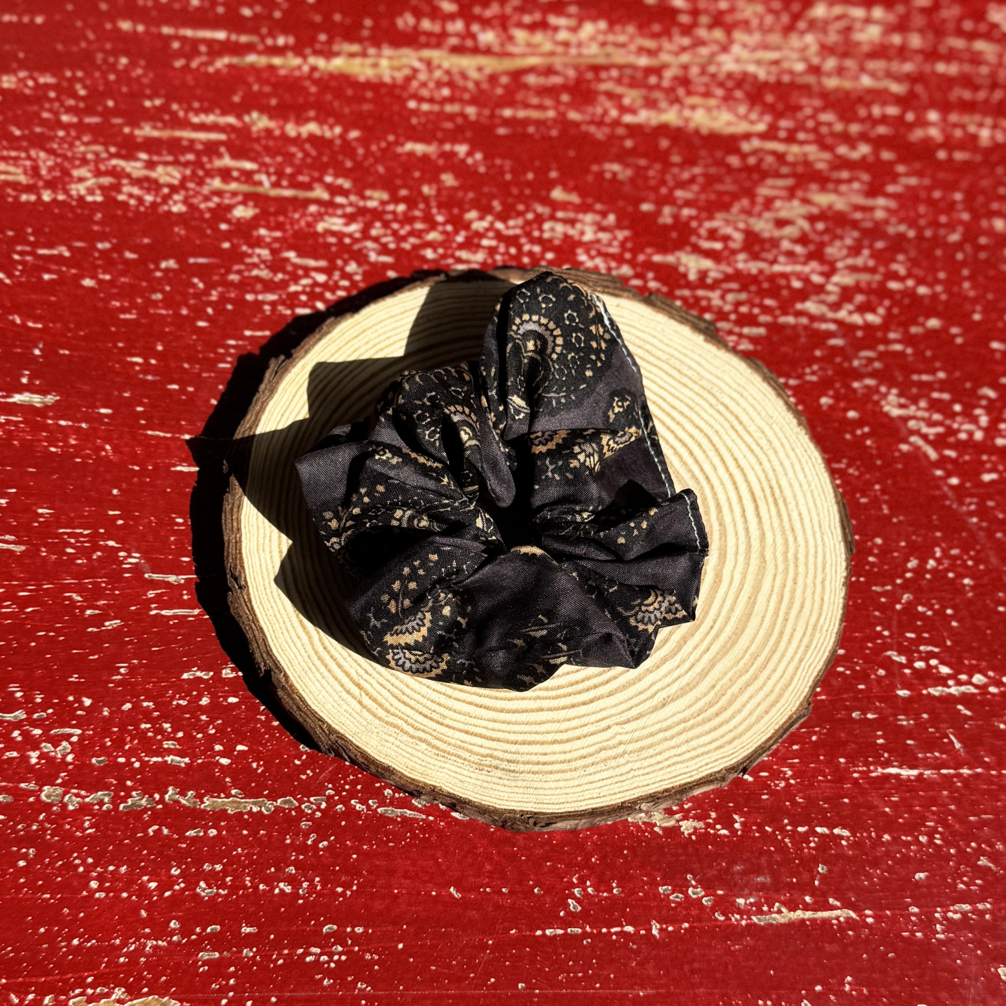 Šilkinė plaukų gumytė pagaminta iš vintažinio sario.