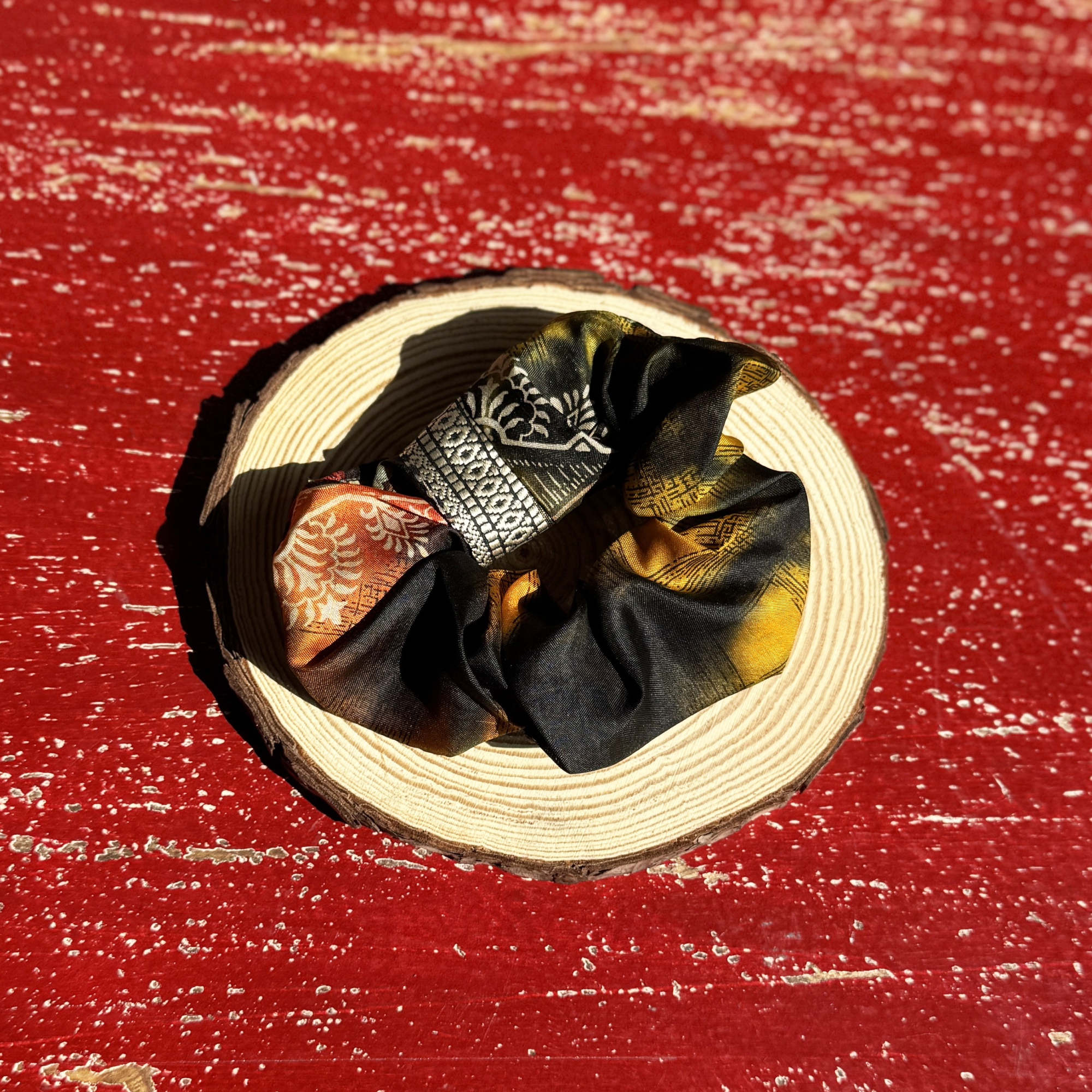 Šilkinė plaukų gumytė pagaminta iš vintažinio sario.