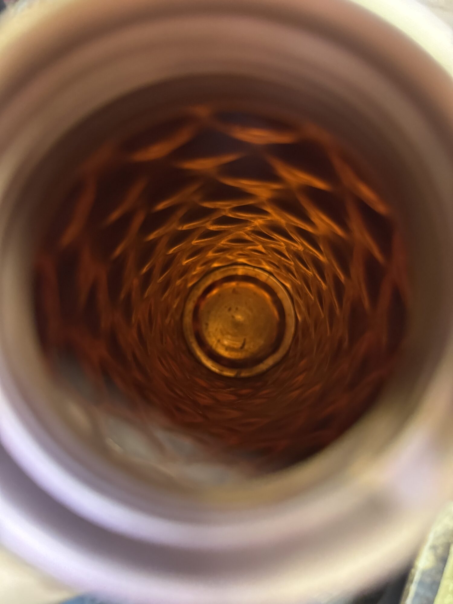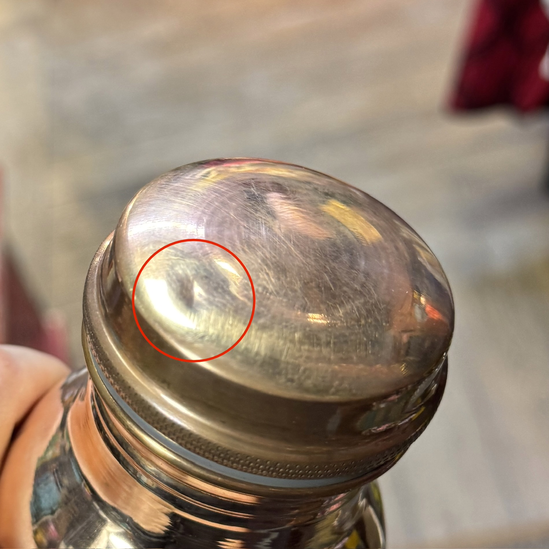 Defektas: Nenupoliruotas vidus, įlenkimas kamštelyje. Matomi antroje ir trečioje nuotraukose. Užsisuka gerai.