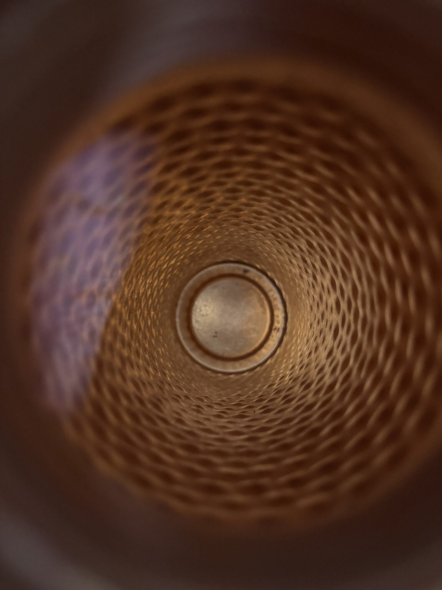 Defektas: barška kamštelis, nenupoliruotas vidus. Matomas antroje nuotraukoje. Užsisuka gerai.