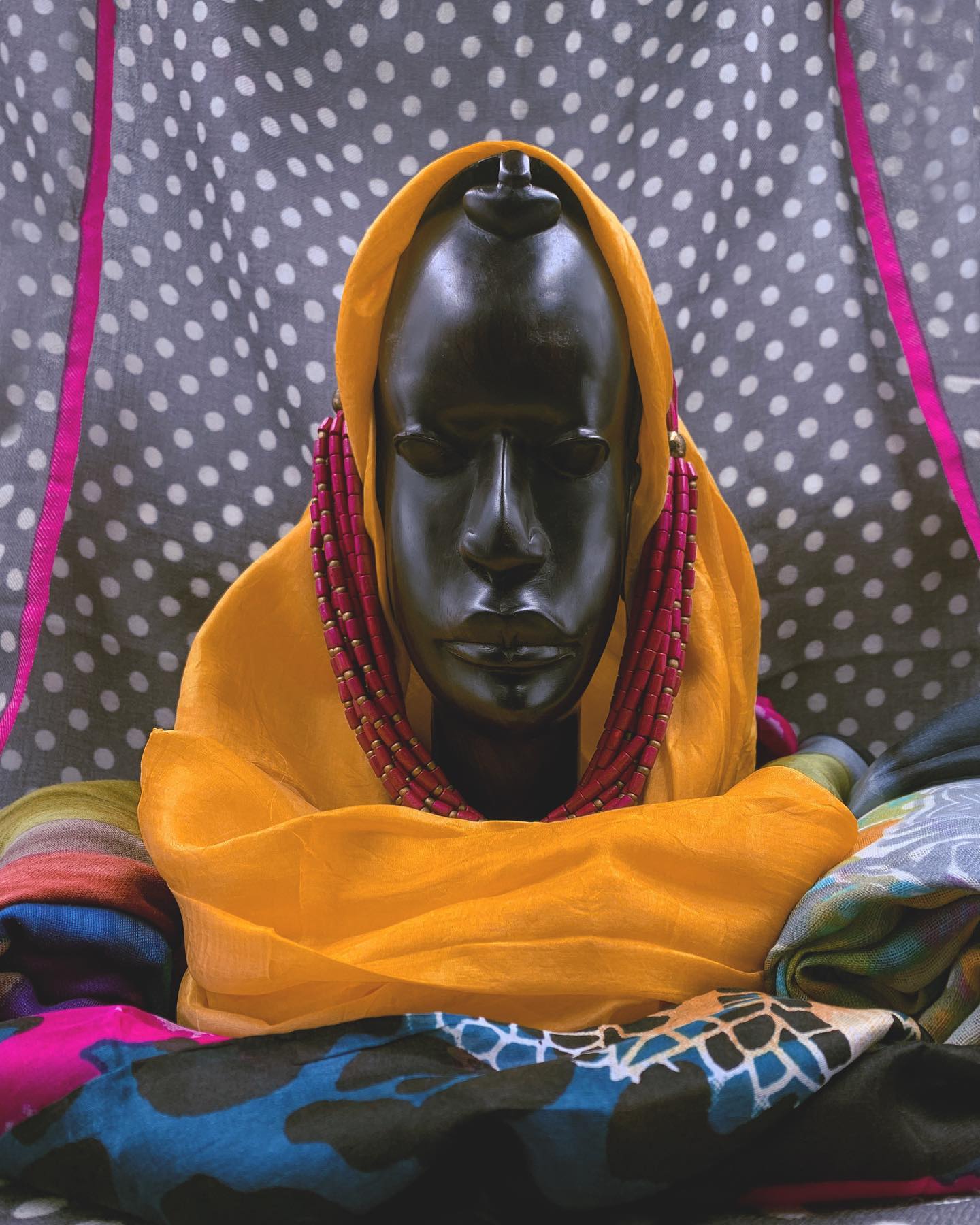 Šilko šalikų raštinis marginimas gali skirtis nuo nuotraukose pateikiamų pavyzdžių, kadangi kiekvienas gaminys gaminamas medinių blokelių spausdinimo technika rankomis, individualiai. Pagrindinės gaminių spalvos tokios pat, kaip pavaizduota nuotraukose.